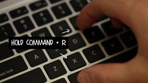 + Bật máy lên và giữ tổ hợp phím Command + R để vào chế độ Recovery.