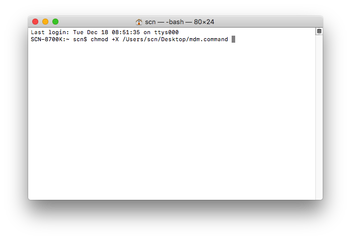 + Mở Terminal: gõ "chmod +X", thêm 1 khoảng trắng và kéo file script vào: