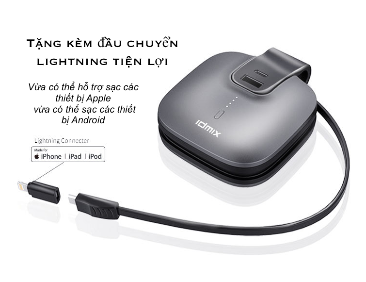 Thiết bị di động trong thời đại 4.0 gần như là vật bất li thân của con người hiện đại, và hiển nhiên, Pin dự phòng cũng chính là “tri kỉ” không thể thiếu để bảo đảm năng lượng luôn đầy đủ cho các thiết bị công nghệ, đặc biệt trong những tình huống cấp bách. Với Pin dự phòng cao cấp IDMIX Mr Charger, chắc chắn sẽ là lựa chọn tối ưu của những người có phong cách sống năng động, đơn giản & hiện đại.